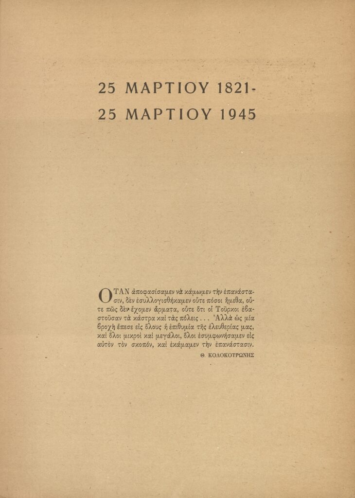 Για τη χιλιάκριβη τη λευτεριά, 1821-1945