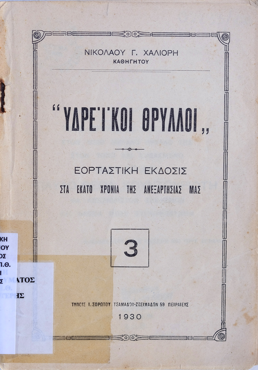 Τεύχος 3 / 1930 | Συλλογή Σπητέρη, c. 1 | Α.Ε. -- 10343 | Παλαίτυπο | Μη δανειζόμενο