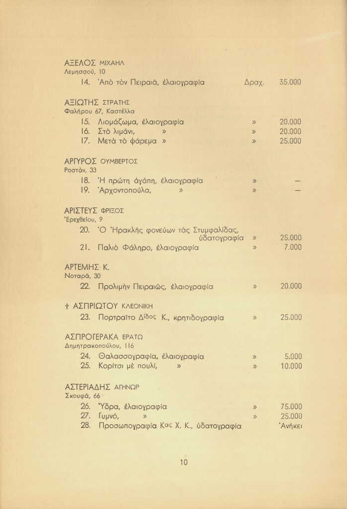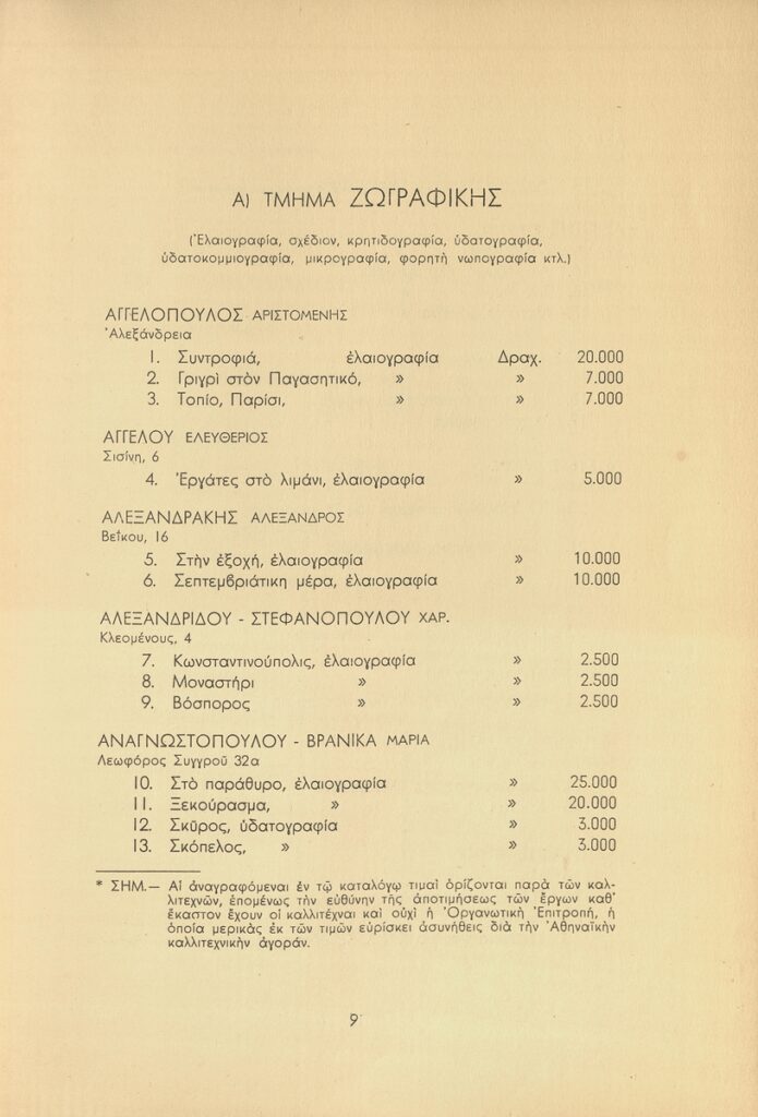 Ετήσια Πανελλήνιος Καλλιτεχνική Έκθεσις 1939 – Κατάλογος των εκτιθεμένων έργων