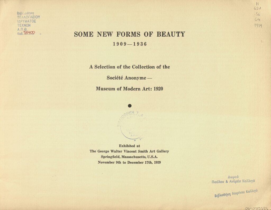 Some New Forms of Beauty, 1909-1936 : A Selection of the Collection of the Société Anonyme-Museum of Modern Art