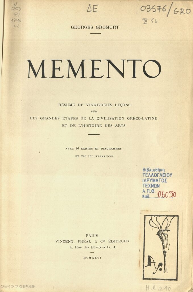 Memento: résumé de vingt-deux leçons sur les grandes étapes de la civilisation gréco-latine et de l’histoire des arts