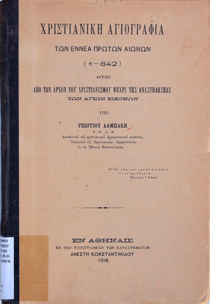 Χριστιανική αγιογραφία των εννέα πρώτων αιώνων (1-842): ήτοι από των αρχών του Χριστιανισμού μέχρι της αναστηλώσεως των αγίων εικόνων