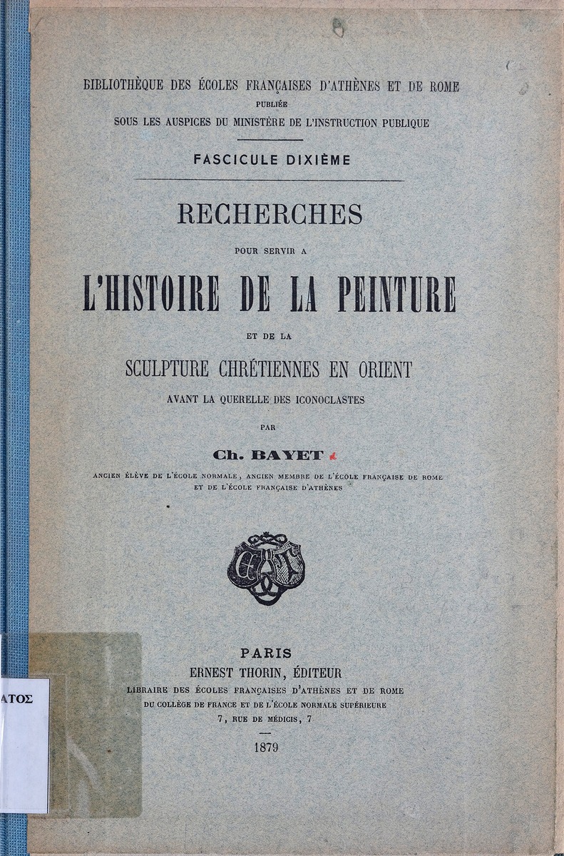 Recherches pour servir a l’histoire de la peinture et de la sculpture chretiennes en Orient avant la querelle des iconoclastes