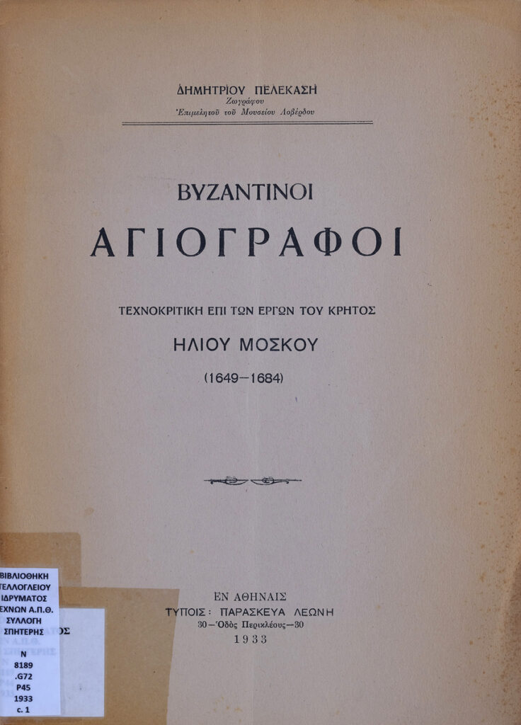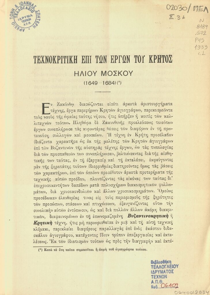 Βυζαντινοί Αγιογράφοι : τεχνοκριτική επί των έργων του Κρητός Ηλιού Μόσκου (1649-1684)