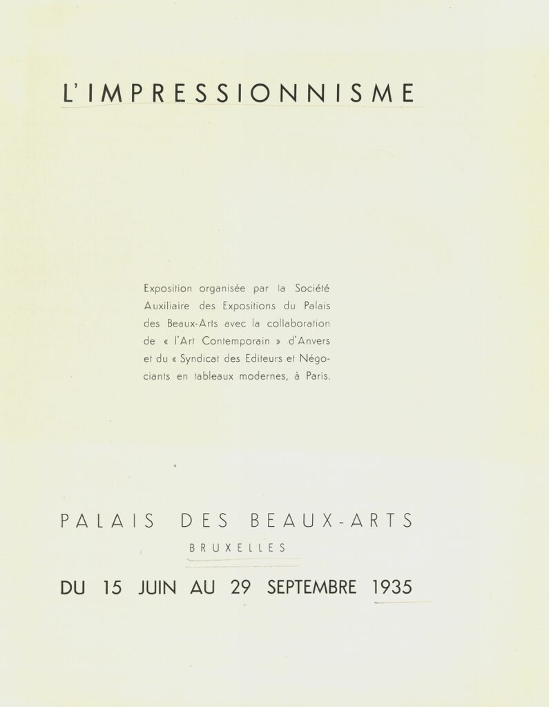 L’Impressionnisme : Bruxelles, Palais des Beaux-Arts du 15 juin au 29 septembre 1935