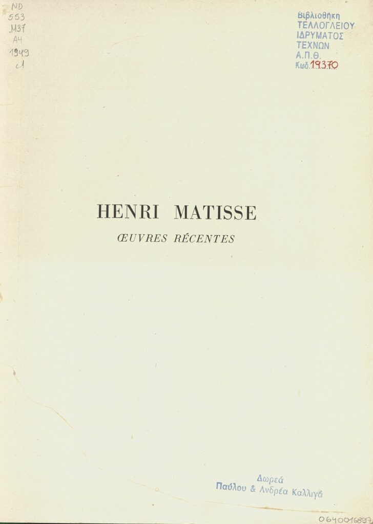 Henri Matisse. Oeuvres récentes, 1947-1948