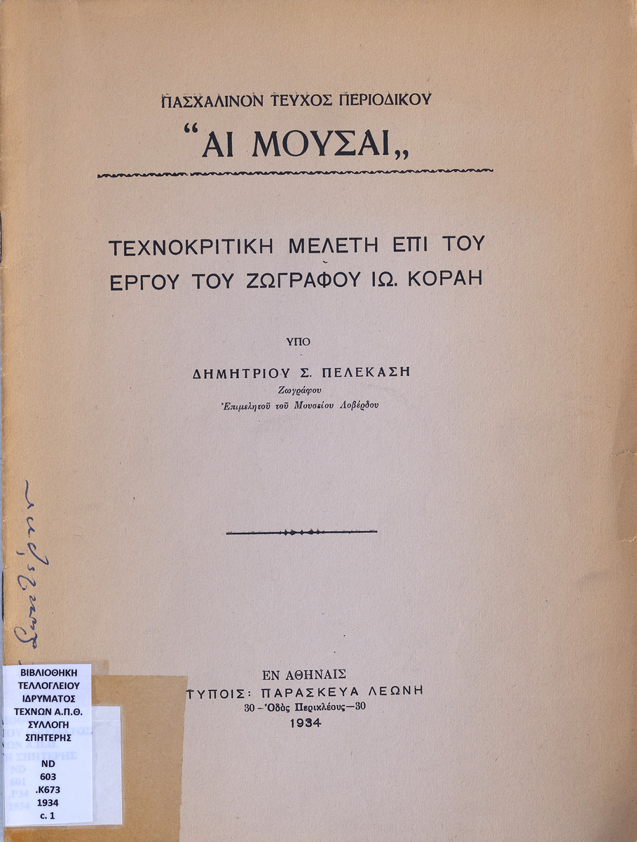 Τεχνοκριτική μελέτη επί του έργου του ζωγράφου Ιω. Κοραή