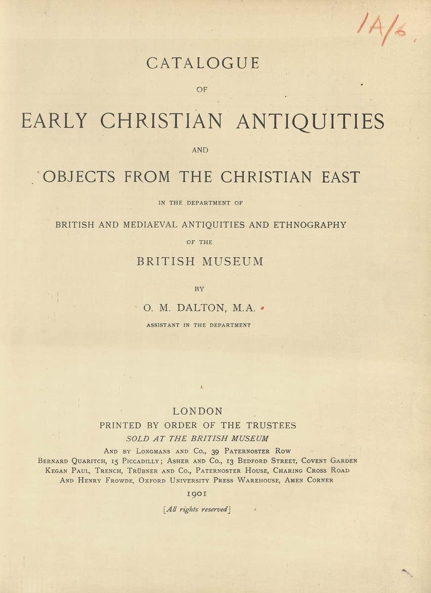 Catalogue of Early Christian Antiquities and Objects from the Christian East in the Department of British and Medieval Antiquities and Ethnography of the British Museum