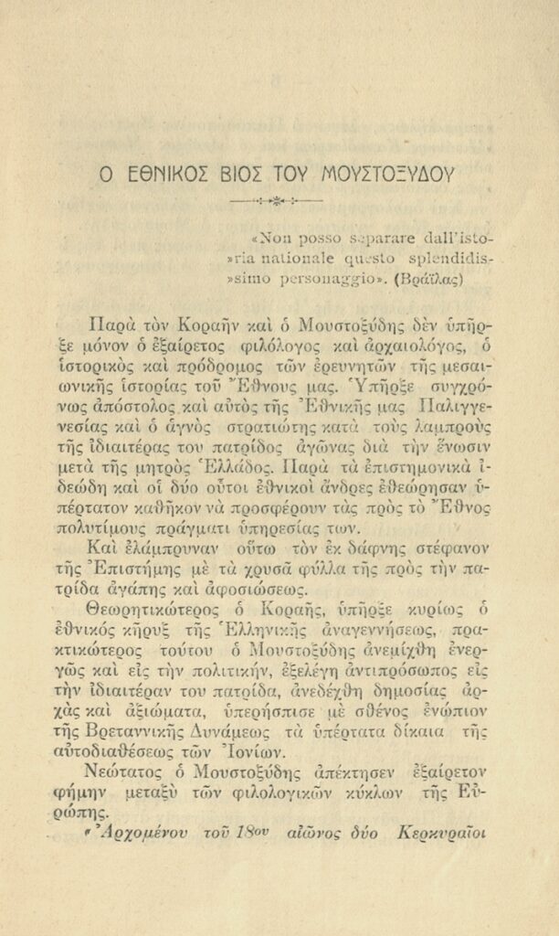 Ο Εθνικός βίος του Μουστοξύδου