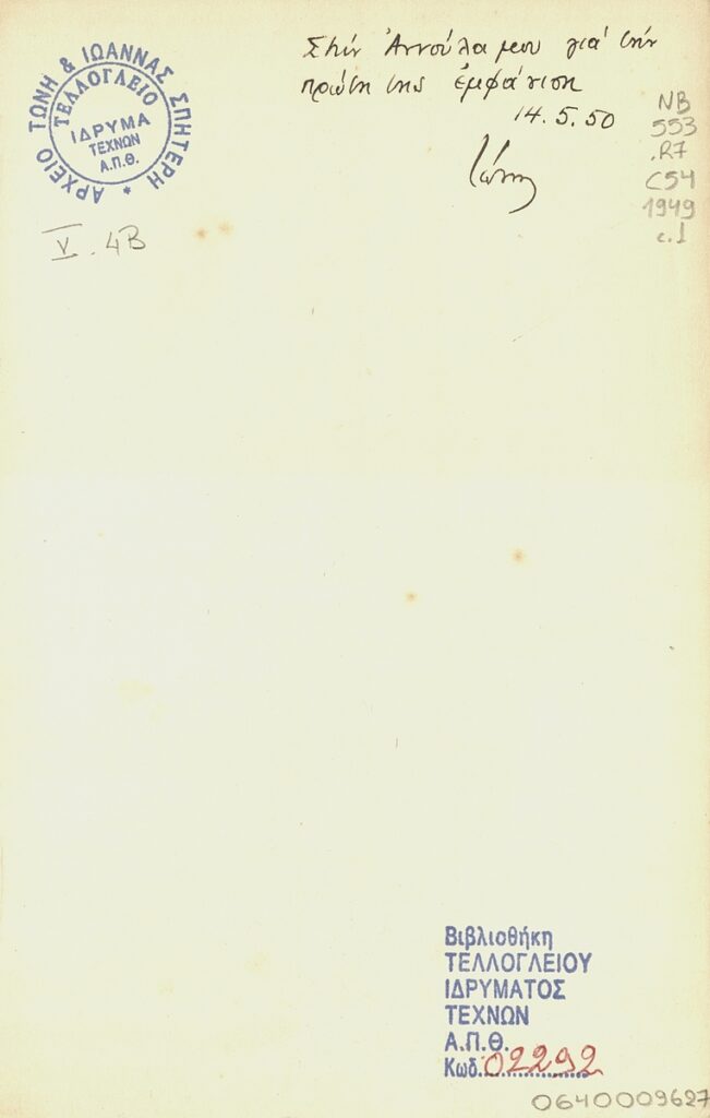 Pablo Picasso (1881 - 1973) ; Ιωάννα Σπητέρη-Βεροπούλου (1920 - 2000) ; Auguste Rodin (1840 - 1917) ; Jean Arp (1886 - 1966) ; Georges Braque (1882 - 1963) ; Fernand Léger (1881 - 1955) ; Jacques Lipchitz ; Nicolas Schöffer ; Raymond Duchamp-Villon (1876 - 1918) ; Georges Vantongerloo (1886 - 1965) ; Constantin Brancusi (1876 - 1957) ; Alexander Archipenko (1887 - 1964) ; Gabrielle Kueny