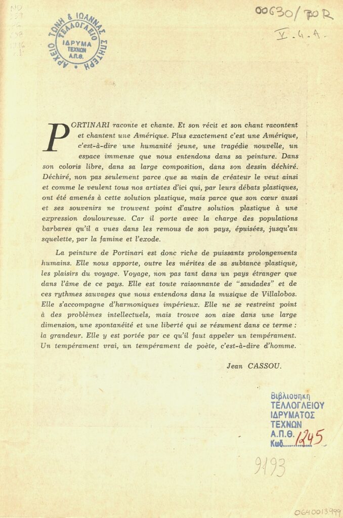 Jean Cassou (1897 - 1986) ; Robert Baser (1908 - 1988) ; Μιχάλης Πολίτης ; A. Casanova ; M. Caraco ; Zvi Sas