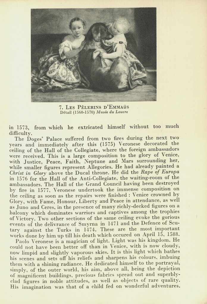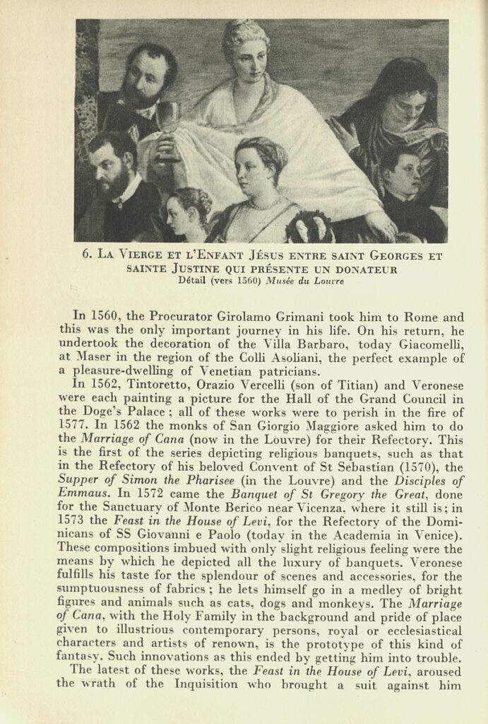 Marco Valsecchi (1913 - 1980) ; Raymond Charmet (1904 - 1973) ; Paolo Veronese (1528 - 1588) ; Giorgione ; Carlo Crivelli ; Tintoretto (1518 - 1594) ; Tiziano (περίπου 1488 - 1576) ; Paolo - Paolo da Venezia Veneziano ; Giovanni Battista Tiepolo (1696 - 1770) ; Marcel Brion (1895 - 1984)