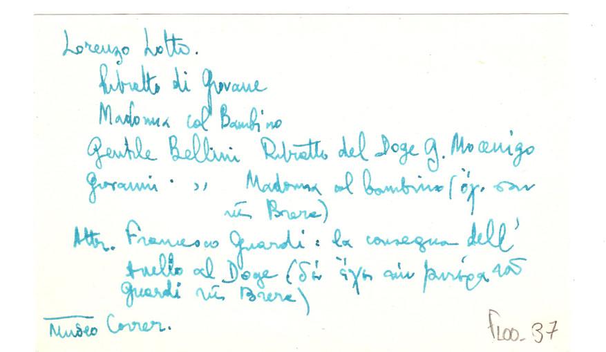 Vittore Carpaccio (π. 1455 - π. 1525) ; Giovanni Bellini (περίπου 1430 - 1516) ; Tiziano (περίπου 1488 - 1576) ; Canaletto (1697 - 1768) ; Pietro Longhi ; Marcel Brion (1895 - 1984)