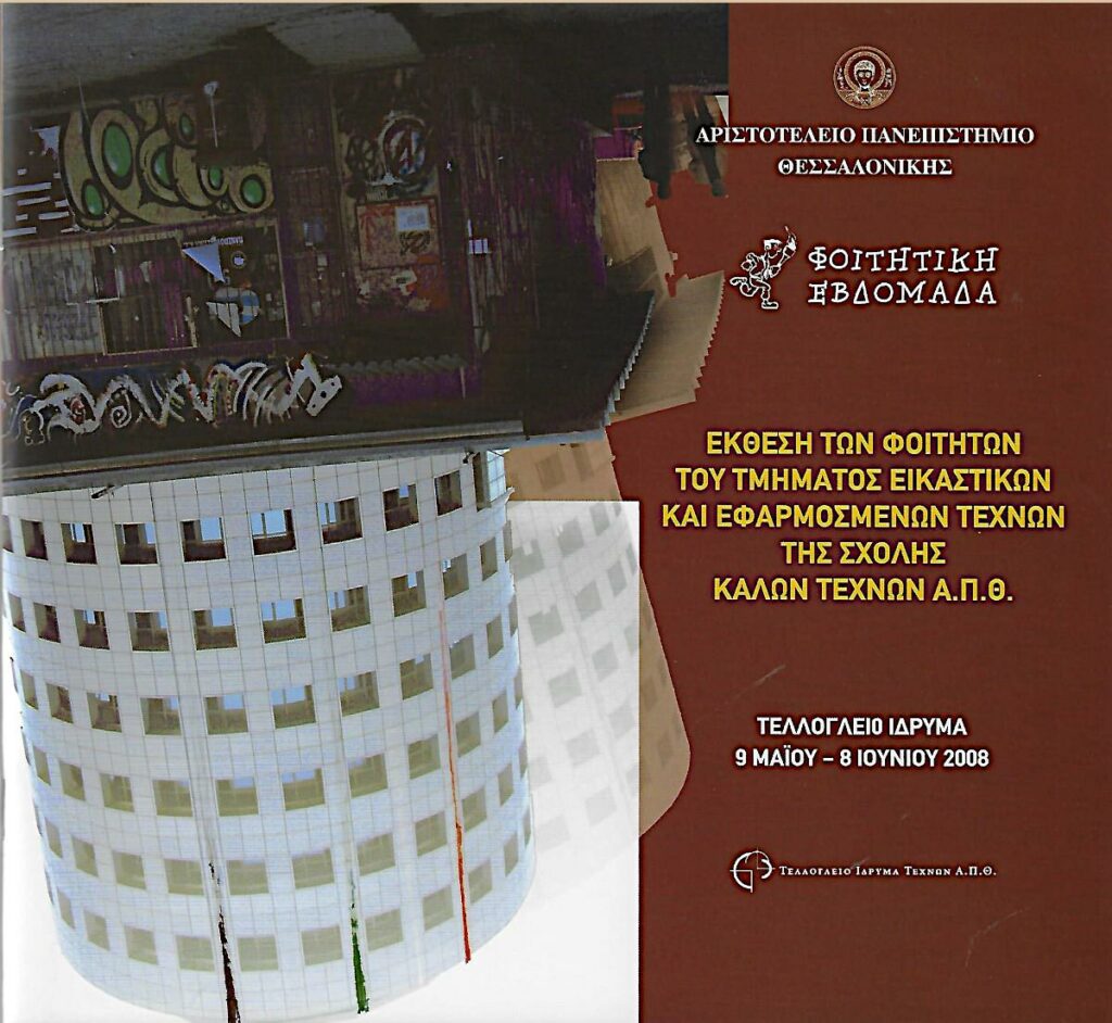 Κατάλογος της ομώνυμης έκθεσης στο Τελλόγλειο Ίδρυμα Τεχνών, Θεσσαλονίκη: 09/05-08/06/2008 στο πλαίσιο της διοργάνωσης “Φοιτητική Εβδομάδα” του Αριστοτελείου Πανεπιστημίου Θεσσαλονίκης.