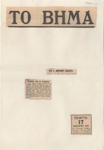 Έντονον διάβημα δι’αποκατάστασιν της ‘Καρτερίας’ του κ. Καπράλου Τώνης Π. Σπητέρης (1910 - 1986) ; Γιάννης Μηλιάδης (1895 - 1975) ; Ευάγγελος Π. Παπανούτσος (1900 - 1982) ; Σπύρος Βασιλείου (1902 - 1985) ; Δημήτριος Ε. Ευαγγελίδης (1886/ 1888 - 1959) ; Λουκία Μαγγιώρου (1914 - 2008) ; Τάσσος Α. (1914 - 1985) ; Μανόλης Χατζηδάκης (1909 - 1998) ; Νικόλαος Χατζηκυριάκος-Γκίκας (1906 - 1994) ; Γεώργιος Κατσίμπαλης (1899 - 1978) ; Γιάννης Μόραλης (1916 - 2009) ; Γεώργιος Γουναρόπουλος (1889 - 1977) ; Σπύρος Παπαλουκάς (1892 - 1957) ; Γιάννης Σπυρόπουλος (1912 - 1990) ; Μαρίνος Γ. Καλλιγάς (1906 - 1985) ; Δημήτρης Ψαθάς (1907 - 1979) ; Χρήστος Καπράλος (1909 - 1993) ; Ερρίκος Κ. Φραντζισκάκης (1908 - 1958) ; Αντώνης Σώχος (1888 - 1975) ; Γιώργος Μπουζιάνης (1885 - 1959) ; Βρασίδας Τσούχλος (1904 - 1981) ; Γιώργος Βακαλό (1902 - 1991) ; Κωνσταντίνος Κιτσίκης ; Ανδρέας Γεωργιάδης, ο Κρης (1892 - 1981) ; Τίτσα Χρυσοχοϊδη (1906 - 1990) ; Νίκος Νικολάου (1909 - 1986) ; Γιάννης Παππάς (1913 - 2005) ; Γεώργιος Κοσμαδόπουλος (1895 - 1967) ; Άγγελος Σπαχής (1903 - 1963) ; Μίμης Καραγάτσης (1908 - 1960) ; Άγγελος Θεοδωρακόπουλος (1882 - 1965) ; Π. Τσολάκου ; Αλέκος Πατσιφάς ; Κ. Βασιλειάδης ; Ρένος Κουτσούρης