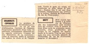 Salon international d’ Art libre Ελένη Σταθοπούλου (1914 - 2016) ; Δημήτρης Α. Φατούρος (1928 - 2020) ; Raymond Cogniat (1896 - 1977) ; Ελένη Ζογγολοπούλου (1909 - 1993) ; Νίκος Σαχίνης (1924 - 1989) ; Γιάννης Γραμματικόπουλος (1928) ; Γεράσιμος Σκλάβος (1927 - 1967) ; Γιώργος Ζογγολόπουλος (1903 - 2004) ; Αμφιτρίτη Αναγνωστοπούλου-Πετρέα (1912 - 2005) ; Λίλη Αρλιώτη (1908 - 1979) ; Άλεξ Μυλωνά (1923 - 2016) ; Χαρίκλεια Φωτίου-Χατζησάββα (1918 - 1984) ; Μαρία Χατζηγάκη (1926) ; Γιώργος Βελισσαρίδης (1909 - 1994) ; Χρίστος Δαγκλής (1916 - 1991) ; Θεόδωρος Δρόσος ; Νίκος Νικολάου (1909 - 1986) ; Ελένη Ζέρβα (1917 - 1993) ; Μαρία Ράμφου (1929 - 1986) ; Κώστας Καραχάλιος (1923 - 2007) ; Αλέξανδρος Κορογιαννάκης (1906 - 1966) ; Γεώργιος Κοσμαδόπουλος (1895 - 1967) ; Γιώργος Μανουσάκης (1914 - 2003) ; Μαρία Αγγελίδου (1925 - 2004) ; Κωνσταντίνος Ξενάκης (1931 - 2020) ; Πάρις Πρέκας (1926 - 1999) ; Πολύκλειτος Ρέγκος (1903 - 1984) ; Γκρέκα ; Δήμητρα Τσερκέζου (1920 - 2007) ; Στάθης Σταθάκος ; Νικόλαος Μαγιάσης