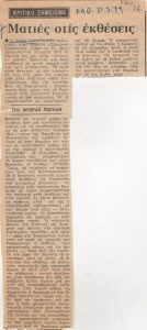 Εγκαινιάσθηκε η πρώτη έκθεση στα εργοστάσια από την Ελληνική Εταιρεία Δημοσίων Σχέσεων Γιώργος Ιωάννου (1926 - 2017) ; Γιώργος Ιωάννου (1926 - 2017) ; Ελένη Βακαλό (1921 - 2001) ; Γιώργος Τούγιας (1922 - 1994) ; Δημήτρης Περδικίδης (1922 - 1989) ; Γιάννης Μιγάδης (1926 - 2017) ; Μίνως Αργυράκης (1920 - 1998) ; Γ. Νικολακόπουλος ; Γιάννης Γαΐτης (1923 - 1984) ; Δημήτρης Μυταράς (1934 - 2017) ; Παντελής Ξαγοράρης (1929 - 2000) ; Άρια Κομιανού (1938 - 2015) ; Μάριος Βατζιάς (1926 - 2008) ; Γιώργος Βογιατζής (1935 - 1993) ; Γιάννης Παρμακέλης (1932) ; Δανιήλ Γουναρίδης (1934) ; Νίκη Καναγκίνη (1933 - 2008) ; Νανά Ησαΐα ; Βαλέριος Καλούτσης (1927 - 2014) ; Λευτέρης Κανακάκις (1934 - 1985) ; Ράλλης Κοψίδης (1929 - 2010) ; Στάθης Λογοθέτης (1925 - 1997) ; Ζανίν Μπαέτ ; Νόρα Αρχελάου (1937) ; Μπία Ντάβου (1932 - 1996) ; Γρηγόρης Σεμιτέκολο ; Βασίλης Σκυλάκος (1930 - 2000) ; Θανάσης Στεφόπουλος (1928 - 2012) ; Philip Tarlow (1940) ; Χρυσούλα Ρωξάνη ; Θεοτόκης Ζερβός ; Σ. Σβορώνος ; Μάριος Τσαρούχης ; Α. Πινότσης ; Ζωή Ουντινόττι ; Κελλίδης