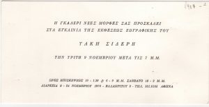 Έκθεση “Πανόραμα Ελληνικής Ζωγραφικής 1950-1975” Γιώργος Ιωάννου (1926 - 2017) ; Γιώργος Τούγιας (1922 - 1994) ; Σωτήρης Σόρογκας (1936) ; Λουκάς Βενετούλιας (1930 - 1984) ; Νίκος Σαχίνης (1924 - 1989) ; Μανώλης Καλλιγιάννης ; Γιάννης Μιγάδης (1926 - 2017) ; Γιώργος Σκοτεινός (1937) ; Φώτης Σαρρής ; Γιώργος Βακιρτζής (1923 - 1988) ; Θόδωρος Μάρκελλος (1925 - 2015) ; Γιάννης Γαΐτης (1923 - 1984) ; Δημήτρης Μυταράς (1934 - 2017) ; Παντελής Ξαγοράρης (1929 - 2000) ; Χρίστος Καράς (1930 - 2023) ; Γιώργος Τουζένης (1957) ; Μάριος Βατζιάς (1926 - 2008) ; Γιώργος Βογιατζής (1935 - 1993) ; Βασίλης Κυπραίος (1936 - 2021) ; Στέλιος Βότσης (1922 - 2012) ; Μιχάλης Γεωργάς (1947) ; Νικόλαος Γεωργιάδης (1925 - 2001) ; Παναγιώτης Τέτσης (1925 - 2016) ; Νέλλα Γκόλαντα (1941 - 2023) ; Δανιήλ Γουναρίδης (1934) ; Αχιλλέας Δρούγκας (1940) ; Πέτρος Ζουμπουλάκης (1937) ; Νίκη Καναγκίνη (1933 - 2008) ; Κώστας Ηλιάκης ; Μάκης Θεοφυλακτόπουλος (1939 - 2023) ; Λευτέρης Κανακάκις (1934 - 1985) ; Βλάσης Κανιάρης (1928 - 2011) ; Σαράντης Καραβούζης (1938 - 2011) ; Τάκης Κατσουλίδης (1933) ; Βασίλης Κελαϊδής (1938) ; Θάλεια Κλεώπα (1928) ; Δημήτρης Κοντός (1931 - 1996) ; Νίκος Κουρούσης (1937) ; Στάθης Λογοθέτης (1925 - 1997) ; Θεόδωρος Μανωλίδης (1940) ; Στέλιος Μαυρομάτης (1930 - 2020) ; Γιάννης Μιχαηλίδης (1940) ; Γιάννης Μίχας (1938 - 2008) ; Παύλος Μοσχίδης (1927 - 2004) ; Χρόνης Μπότσογλου (1941 - 2022) ; Μαρία Σπέντζα (1925 - 2011) ; Κλειώ Νάτση (1929 - 2024) ; Μπία Ντάβου (1932 - 1996) ; Θωμάς Παπαδοπεράκης (1943) ; Μανόλης Πηλαδάκης (1927) ; Πάρις Πρέκας (1926 - 1999) ; Λευτέρης Ρόρρος (1939 - 1967) ; Δημήτρης Σακελλίων (1947) ; Τάκης Σιδέρης (1929) ; Ζωή Σκιαδαρέση (1934 - 2014) ; Θανάσης Στεφόπουλος (1928 - 2012)
