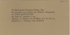 Έκθεση “Σύγχρονη Ελληνική Ζωγραφική” Παύλος Βασιλειάδης (1946 - 2025) ; Κυριάκος Κατζουράκης (1944 - 2021) ; Γιώργος Τούγιας (1922 - 1994) ; Βαγγέλης Φαεινός (1918 - 1985) ; Νίκος Σαχίνης (1924 - 1989) ; Κώστας Τσόκλης (1930) ; Θανάσης Ακριβόπουλος (1940 - 2017) ; Ντίκος Βυζάντιος (1924 - 2007) ; Γιάννης Γαΐτης (1923 - 1984) ; Παντελής Ξαγοράρης (1929 - 2000) ; Βαγγέλης Δημητρέας (1934 - 2019) ; Χρίστος Καράς (1930 - 2023) ; Αποστόλης Τσιρογιάννης (1946) ; Κώστας Χαραλαμπίδης (1946) ; Σάββας Χαρατσίδης (1928 - 1994) ; Άλκης Πιερράκος (1920 - 2017) ; Γιάννης Ψυχοπαίδης (1945) ; Βασίλης Κυπραίος (1936 - 2021) ; Γιούλια Γαζετοπούλου-Σταυρίδου (1935) ; Μιχάλης Γεωργάς (1947) ; Δανιήλ Γουναρίδης (1934) ; Παναγιώτης Γράββαλος (1933 - 2015) ; Δημήτρης Αληθεινός (1945) ; Πέτρος Ζουμπουλάκης (1937) ; Νίκη Καναγκίνη (1933 - 2008) ; Μάκης Θεοφυλακτόπουλος (1939 - 2023) ; Σταύρος Ιωάννου, εικαστικός (1945) ; Λευτέρης Κανακάκις (1934 - 1985) ; Τάκης Κατσουλίδης (1933) ; Δημοσθένης Κοκκινίδης (1929 - 2020) ; Δημήτρης Κοντός (1931 - 1996) ; Γιώργος Λαζόγκας (1945 - 2022) ; Στάθης Λογοθέτης (1925 - 1997) ; Ασαντούρ Μπαχαριάν (1924 - 1990) ; Γεώργιος Λολοσίδης (1937 - 2015) ; Στέλιος Μαυρομάτης (1930 - 2020) ; Γιώργος Μήλιος (1935 - 2021) ; Γιάννης Μιχαηλίδης (1940) ; Γιάννης Μίχας (1938 - 2008) ; Παύλος Μοσχίδης (1927 - 2004) ; Χρόνης Μπότσογλου (1941 - 2022) ; Χαρίκλεια Μυταρά (1935) ; Μπία Ντάβου (1932 - 1996) ; Βάνα Ξένου (1949) ; Θωμάς Παπαδοπεράκης (1943) ; Ρένα Παπασπύρου-Βαρδάκα (1938) ; Τριαντάφυλλος Πατρασκίδης ; Δημήτρης Σακελλίων (1947) ; Γιάννης Σημηριώτης ; Βασίλης Σκυλάκος (1930 - 2000) ; Υβόννη Συρμοπούλου ; Δημήτρης Καψάνης ; Σωτήρης Ζερβόπουλος (1934 - 2007) ; Μαρίνα Πετρή (1961) ; Ιωάννης Παπανελόπουλος (1936) ; Απόστολος Γεωργίου (1952)