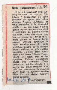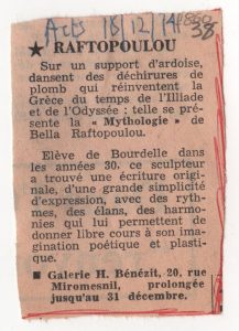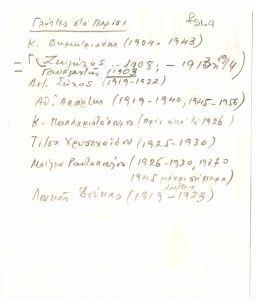 Artistes grecs à Paris Ιωάννα Σπητέρη-Βεροπούλου (1920 - 2000) ; Μάρκος Βαφειάδης (1906 - 1992) ; Μπέλλα Ραφτοπούλου (1902 - 1992) ; Παύλος (Διονυσόπουλος) (1930 - 2019) ; Τζον Χριστοφόρου (1921 - 2014) ; Αλέκος Φασιανός (1935 - 2022) ; Μανώλης Καλλιγιάννης ; Γαβριέλλα Σίμωσι (1926 - 1999) ; Γιάννης Τσαρούχης (1910 - 1989) ; Κώστας Τσόκλης (1930) ; Δανιήλ (1924 - 2008) ; Κώστας Κουλεντιανός (1918 - 1995) ; Ντίκος Βυζάντιος (1924 - 2007) ; Ρένα Τζολάκη (1930) ; Αριστομένης Αγγελόπουλος (1900 - 1990) ; Φιλόλαος (1923 - 2010) ; Γιάννης Φωκάς (1951) ; Κώστας Χαραλαμπίδης (1946) ; Άλκης Πιερράκος (1920 - 2017) ; Βασίλης Σπεράντζας (1938) ; Σαράντης Καραβούζης (1938 - 2011) ; Γιούλικα Λακερίδου (1940) ; Άννα Κινδύνη-Μαρουδή ; Τίτα Κριεζή (1930 - 2021) ; Αγλαΐα Λυμπεράκη (1923 - 1985) ; Κώστας Μακρής ; Γιάννης Μαλτέζος (1915 - 1987) ; Ιάσων Μολφέσης (1925 - 2009) ; Κωνσταντίνος Μόραλης ; Γιάννης Μπουτέας (1941) ; Κωνσταντίνος Ξενάκης (1931 - 2020) ; Ναυσικά Πάστρα (1921 - 2011) ; Gisele Πράσινου ; Βασιλική Τσεκούρα (1947) ; Πάνος Ελευθερίου ; Δημήτρης Ράτσικας (1946) ; Νίκος Δαμιανάκης (1920 - 2005) ; Μίλτος Παντελιάς (1954) ; Νίκος Τσιώτης ; Εριέττα Βορδώνη (1959) ; Κωνσταντίνος Γιαννικούρης