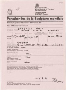«Καλλιτέχνες παγκοσμίου φήμης στα “Παναθήναια της Παγκοσμίου Γλυπτικής”» Pablo Picasso (1881 - 1973) ; Joan Miró (1893 - 1983) ; Pierre-Auguste Renoir (1841 - 1919) ; Salvador Dalí (1904 - 1989) ; Alexander Calder (1898 - 1976) ; Auguste Rodin (1840 - 1917) ; Henry Moore (1898 - 1986) ; Jean Arp (1886 - 1966) ; Henri Matisse (1869 - 1954) ; Georges Braque (1882 - 1963) ; Jacques Lipchitz ; Morice Lipsi (1898 - 1986) ; Henri Laurens (1885 - 1954) ; Edgar Degas (1834 - 1917) ; Marino Marini (1901 - 1980) ; Amedeo Modigliani (1884 - 1920) ; Ivan Meštrović (1883 - 1962) ; Jean Fautrier (1898 - 1964) ; Isamu Noguchi (1904 - 1988) ; Alberto Giacometti (1901 - 1966) ; Marc Chagall (1887 - 1985) ; Ossip Zadkine (1890 - 1967) ; Jean Dubuffet (1901 - 1985) ; Marcel Duchamp (1887 - 1968) ; Raymond Duchamp-Villon (1876 - 1918) ; Honoré Daumier (1808 - 1879) ; André Derain (1880 - 1954) ; Jacob Epstein (1880 - 1959) ; Julio Gonzalez (1876 - 1942) ; Pablo Gargallo (1881 - 1934) ; Marcel Gimond (1894 - 1961) ; Barbara Hepworth (1903 - 1975) ; Wilhelm Lehmbruck (1881 - 1919) ; George Minne ; Charles Malfray ; Antoine Pevsner ; Ernst Barlach (1870 - 1938) ; Etienne Beöthy (1897 - 1961) ; Max Bill (1908 - 1994) ; Umberto Boccioni (1882 - 1916) ; Pablo Curatella Manes ; Constantin Brancusi (1876 - 1957) ; Alexander Archipenko (1887 - 1964) ; Antoine Bourdelle (1861 - 1929) ; Jean Peyrissac (1895 - 1974) ; Joseph Csaky (1888 - 1971) ; Fritz Wotruba (1907 - 1975) ; Henri Hamm ; Anton Prinner (1902 - 1983) ; Jean Chauvin ; Honorio Garcia Condoy