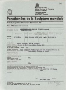 «Καλλιτέχνες παγκοσμίου φήμης στα “Παναθήναια της Παγκοσμίου Γλυπτικής”» Pablo Picasso (1881 - 1973) ; Joan Miró (1893 - 1983) ; Pierre-Auguste Renoir (1841 - 1919) ; Salvador Dalí (1904 - 1989) ; Alexander Calder (1898 - 1976) ; Auguste Rodin (1840 - 1917) ; Henry Moore (1898 - 1986) ; Jean Arp (1886 - 1966) ; Henri Matisse (1869 - 1954) ; Georges Braque (1882 - 1963) ; Jacques Lipchitz ; Morice Lipsi (1898 - 1986) ; Henri Laurens (1885 - 1954) ; Edgar Degas (1834 - 1917) ; Marino Marini (1901 - 1980) ; Amedeo Modigliani (1884 - 1920) ; Ivan Mestrovic (1883 - 1962) ; Jean Fautrier (1898 - 1964) ; Isamu Noguchi (1904 - 1988) ; Alberto Giacometti (1901 - 1966) ; Marc Chagall (1887 - 1985) ; Ossip Zadkine (1890 - 1967) ; Jean Dubuffet (1901 - 1985) ; Marcel Duchamp (1887 - 1968) ; Raymond Duchamp-Villon (1876 - 1918) ; Honoré Daumier (1808 - 1879) ; André Derain (1880 - 1954) ; Jacob Epstein (1880 - 1959) ; Julio Gonzalez (1876 - 1942) ; Pablo Gargallo (1881 - 1934) ; Marcel Gimond (1894 - 1961) ; Barbara Hepworth (1903 - 1975) ; Wilhelm Lehmbruck ; George Minne ; Charles Malfray ; Antoine Pevsner ; Ernst Barlach (1870 - 1938) ; Etienne Beöthy (1897 - 1961) ; Max Bill (1908 - 1994) ; Umberto Boccioni (1882 - 1916) ; Pablo Curatella Manes ; Constantin Brancusi (1876 - 1957) ; Alexander Archipenko (1887 - 1964) ; Antoine Bourdelle (1861 - 1929) ; Jean Peyrissac (1895 - 1974) ; Joseph Csaky (1888 - 1971) ; Fritz Wotruba (1907 - 1975) ; Henri Hamm ; Anton Prinner (1902 - 1983) ; Jean Chauvin ; Honorio Garcia Condoy
