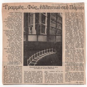 Artistes grecs à Paris Ιωάννα Σπητέρη-Βεροπούλου (1920 - 2000) ; Μάρκος Βαφειάδης (1906 - 1992) ; Μπέλλα Ραφτοπούλου (1902 - 1992) ; Παύλος (Διονυσόπουλος) (1930 - 2019) ; Τζον Χριστοφόρου (1921 - 2014) ; Αλέκος Φασιανός (1935 - 2022) ; Μανώλης Καλλιγιάννης ; Γαβριέλλα Σίμωσι (1926 - 1999) ; Γιάννης Τσαρούχης (1910 - 1989) ; Κώστας Τσόκλης (1930) ; Δανιήλ (1924 - 2008) ; Κώστας Κουλεντιανός (1918 - 1995) ; Ντίκος Βυζάντιος (1924 - 2007) ; Ρένα Τζολάκη (1930) ; Αριστομένης Αγγελόπουλος (1900 - 1990) ; Φιλόλαος (1923 - 2010) ; Γιάννης Φωκάς (1951) ; Κώστας Χαραλαμπίδης (1946) ; Άλκης Πιερράκος (1920 - 2017) ; Βασίλης Σπεράντζας (1938) ; Σαράντης Καραβούζης (1938 - 2011) ; Γιούλικα Λακερίδου (1940) ; Άννα Κινδύνη-Μαρουδή ; Τίτα Κριεζή (1930 - 2021) ; Αγλαΐα Λυμπεράκη (1923 - 1985) ; Κώστας Μακρής ; Γιάννης Μαλτέζος (1915 - 1987) ; Ιάσων Μολφέσης (1925 - 2009) ; Κωνσταντίνος Μόραλης ; Γιάννης Μπουτέας (1941) ; Κωνσταντίνος Ξενάκης (1931 - 2020) ; Ναυσικά Πάστρα (1921 - 2011) ; Gisele Πράσινου ; Βασιλική Τσεκούρα (1947) ; Πάνος Ελευθερίου ; Δημήτρης Ράτσικας (1946) ; Νίκος Δαμιανάκης (1920 - 2005) ; Μίλτος Παντελιάς (1954) ; Νίκος Τσιώτης ; Εριέττα Βορδώνη (1959) ; Κωνσταντίνος Γιαννικούρης