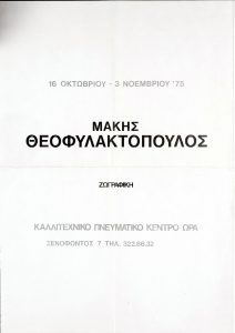 Έκθεση “Πανόραμα Ελληνικής Ζωγραφικής 1950-1975” Γιώργος Ιωάννου, λογοτέχνης (1927 - 1985) ; Γιώργος Τούγιας (1922 - 1994) ; Σωτήρης Σόρογκας (1936) ; Λουκάς Βενετούλιας (1930 - 1984) ; Νίκος Σαχίνης (1924 - 1989) ; Μανώλης Καλλιγιάννης ; Γιάννης Μιγάδης (1926 - 2017) ; Γιώργος Σκοτεινός (1937) ; Φώτης Σαρρής ; Γιώργος Βακιρτζής (1923 - 1988) ; Θόδωρος Μάρκελλος (1925 - 2015) ; Γιάννης Γαΐτης (1923 - 1984) ; Δημήτρης Μυταράς (1934 - 2017) ; Παντελής Ξαγοράρης (1929 - 2000) ; Χρίστος Καράς (1930 - 2023) ; Γιώργος Τουζένης (1957) ; Μάριος Βατζιάς (1926 - 2008) ; Γιώργος Βογιατζής (1935 - 1993) ; Βασίλης Κυπραίος ; Στέλιος Βότσης (1922 - 2012) ; Μιχάλης Γεωργάς (1947) ; Νικόλαος Γεωργιάδης (1925 - 2001) ; Παναγιώτης Τέτσης (1925 - 2016) ; Νέλλα Γκόλαντα (1941 - 2023) ; Δανιήλ Γουναρίδης (1934) ; Αχιλλέας Δρούγκας (1940) ; Πέτρος Ζουμπουλάκης ; Νίκη Καναγκίνη (1933 - 2008) ; Κώστας Ηλιάκης ; Μάκης Θεοφυλακτόπουλος (1939 - 2023) ; Λευτέρης Κανακάκις (1934 - 1985) ; Βλάσης Κανιάρης (1928 - 2011) ; Σαράντης Καραβούζης (1938 - 2011) ; Τάκης Κατσουλίδης (1933) ; Βασίλης Κελαϊδής (1938) ; Θάλεια Κλεώπα (1928) ; Δημήτρης Κοντός (1931 - 1996) ; Νίκος Κουρούσης (1937) ; Στάθης Λογοθέτης (1925 - 1997) ; Θεόδωρος Μανωλίδης ; Στέλιος Μαυρομάτης (1930 - 2020) ; Γιάννης Μιχαηλίδης (1940) ; Γιάννης Μίχας (1938 - 2008) ; Παύλος Μοσχίδης (1927 - 2004) ; Χρόνης Μπότσογλου (1941 - 2022) ; Μαρία Σπέντζα (1925 - 2011) ; Κλειώ Νάτση (1929 - 2024) ; Μπία Ντάβου (1932 - 1996) ; Θωμάς Παπαδοπεράκης ; Μανόλης Πηλαδάκης (1927) ; Πάρις Πρέκας (1926 - 1999) ; Λευτέρης Ρόρρος (1939 - 1967) ; Δημήτρης Σακελλίων ; Τάκης Σιδέρης (1929) ; Ζωή Σκιαδαρέση (1934 - 2014) ; Θανάσης Στεφόπουλος (1928 - 2012)
