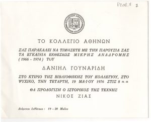 Εγκαινιάσθηκε η πρώτη έκθεση στα εργοστάσια από την Ελληνική Εταιρεία Δημοσίων Σχέσεων Γιώργος Ιωάννου, λογοτέχνης (1927 - 1985) ; Εμμανουήλ Μαυρομμάτης (1935) ; Ελένη Βακαλό (1921 - 2001) ; Γιώργος Τούγιας (1922 - 1994) ; Δημήτρης Περδικίδης (1922 - 1989) ; Γιάννης Μιγάδης (1926 - 2017) ; Μίνως Αργυράκης (1920 - 1998) ; Γ. Νικολακόπουλος ; Γιάννης Γαΐτης (1923 - 1984) ; Δημήτρης Μυταράς (1934 - 2017) ; Παντελής Ξαγοράρης (1929 - 2000) ; Άρια Κομιανού (1938 - 2015) ; Μάριος Βατζιάς (1926 - 2008) ; Γιώργος Βογιατζής (1935 - 1993) ; Γιάννης Παρμακέλης (1932) ; Δανιήλ Γουναρίδης (1934) ; Νίκη Καναγκίνη (1933 - 2008) ; Νανά Ησαΐα ; Βαλέριος Καλούτσης (1927 - 2014) ; Λευτέρης Κανακάκις (1934 - 1985) ; Ράλλης Κοψίδης (1929 - 2010) ; Στάθης Λογοθέτης (1925 - 1997) ; Ζανίν Μπαέτ ; Νόρα Αρχελάου (1937) ; Μπία Ντάβου (1932 - 1996) ; Γρηγόρης Σεμιτέκολο ; Βασίλης Σκυλάκος (1930 - 2000) ; Θανάσης Στεφόπουλος (1928 - 2012) ; Philip Tarlow (1940) ; Χρυσούλα Ρωξάνη ; Θεοτόκης Ζερβός ; Σ. Σβορώνος ; Μάριος Τσαρούχης ; Α. Πινότσης ; Ζωή Ουντινόττι ; Κελλίδης