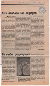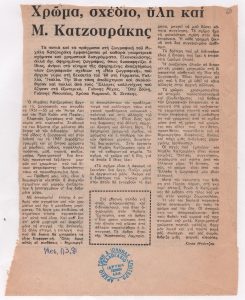 «Εκθέσεις. Ενδιαφέρουσα και πλούσια η νέα εικαστική περίοδος» Eduardo Arroyo (1937 - 2018) ; Νικόλαος Χατζηκυριάκος-Γκίκας (1906 - 1994) ; Γιάννης Μόραλης (1916 - 2009) ; Μιχάλης Κατζουράκης (1933) ; Αλέκος Φασιανός (1935 - 2022) ; Γιώργος Σικελιώτης (1917 - 1984) ; Κώστας Τσόκλης (1930) ; Όπυ Ζούνη (1941 - 2008) ; Φώτης Σαρρής ; Δημήτρης Μυταράς (1934 - 2017) ; Όλγα Ιωάννου (20ος αιώνας) ; Horst Antes (1936) ; Στήβεν Αντωνάκος (1926 - 2013) ; Ηλίας Δεκουλάκος (1929 - 1998) ; Joseph Beuys (1921 - 1986) ; Σταυριανός Κατσιρέας (1937) ; Άλκης Πιερράκος (1920 - 2017) ; Άρια Κομιανού (1938 - 2015) ; Αλέξης Ακριθάκης (1939 - 1994) ; Νικόλαος Βλαβιανός (1929) ; Ηρώ Κανακάκη (1945 - 1997) ; Αντώνης Απέργης (1938 - 2018) ; Σίλεια Δασκαλοπούλου (1936) ; Νάσσος Δάφνης (1914 - 2010) ; Άγγελος Θεοδωρόπουλος (1883 - 1965) ; Λευτέρης Κανακάκις (1934 - 1985) ; Μάρα Καρέτσου ; Νίκος Κεσσανλής (1930 - 2004) ; Άστριντ Κόκκα ; Λουκάς Σαμαράς (1936) ; Γιώργος Μαυροΐδης (1912 - 2003) ; Hermann Blauth (1939 - 2012) ; Κοσμάς Ξενάκης (1925 - 1984) ; Θεόδωρος Πανταλέων ; Πάρις Πρέκας (1926 - 1999) ; Umberto Mariani