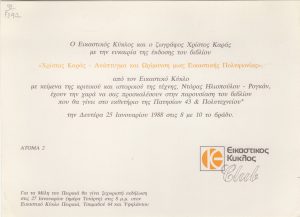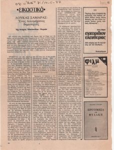 «Η Τέχνη στην Κοινωνία. Πρωτόκολλο του σεμιναρίου, Απρίλης 1977» Άννα Κοράκη (1944) ; Βεατρίκη Σπηλιάδη (1936 - 2023) ; Έφη Ανδρεάδη (20ος αιώνας) ; Ντόρα Ηλιοπούλου-Ρογκάν (20ος αιώνας) ; Όπυ Ζούνη (1941 - 2008) ; Χρήστος Μ. Ιωακειμίδης (1932 - 2017) ; Γιώργος Ζογγολόπουλος (1903 - 2004) ; Αχιλλέας Απέργης (1909 - 1986) ; Θανάσης Βαλτινός (1932 - 2024) ; Παντελής Ξαγοράρης (1929 - 2000) ; Βαγγέλης Δημητρέας (1934 - 2019) ; Φωτεινή Μηλιδάκη (1920 - 1991) ; Μάριος Βατζιάς (1926 - 2008) ; Αλέξης Ακριθάκης (1939 - 1994) ; Ασπασία Παπαθανασίου ; Ελένη Ζέρβα (1917 - 1993) ; Άγγελος Θεοδωρόπουλος (1883 - 1965) ; Μάκης Θεοφυλακτόπουλος (1939 - 2023) ; Βλάσης Κανιάρης (1928 - 2011) ; Γιώργος Αργυράκης (1938 - 2022) ; Γιάννης Μίχας (1938 - 2008) ; Μπία Ντάβου (1932 - 1996) ; Γιάννης Σημηριώτης ; Dieter Hacker (1942) ; Νίκος Μαρσέλλος ; Μάρκος Παντελίδης ; Ρένος Ξείππας ; Έφη Παγκράτη ; Γιάννης Κουμπαράκος ; Karen Bernier ; Γιώργος Πεφάνης ; Μάγδα Σιδέρη ; Πάτη Μόρφη