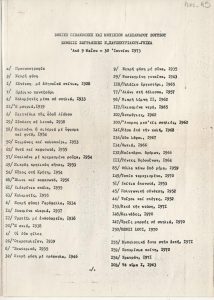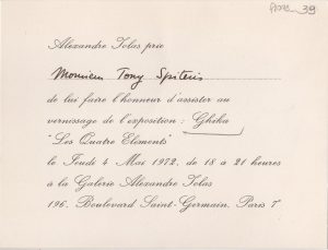 Έκθεση “Λαχειοφόρος έκθεσις της ερανικής επιτροπής δια την ενίσχυσιν των οικογενειών των κρατούμενων Κυπρίων” Τώνης Π. Σπητέρης (1910 - 1986) ; Βάσω Κατράκη (1914 - 1988) ; Σπύρος Βασιλείου (1902 - 1985) ; Ορέστης Κανέλλης (1910 - 1979) ; Τάσσος Α. (1914 - 1985) ; Νικόλαος Χατζηκυριάκος-Γκίκας (1906 - 1994) ; Γιάννης Μόραλης (1916 - 2009) ; Γεώργιος Γουναρόπουλος (1889 - 1977) ; Σπύρος Παπαλουκάς (1892 - 1957) ; Γιάννης Μηταράκης (1898 - 1963) ; Αγήνωρ Αστεριάδης (1898 - 1977) ; Γιώργος Σικελιώτης (1917 - 1984) ; Γιάννης Σπυρόπουλος (1912 - 1990) ; Γιάννης Τσαρούχης (1910 - 1989) ; Δημήτρης Γιαννουκάκης (1898 - 1991) ; Χρήστος Καπράλος (1909 - 1993) ; Λίλη Αρλιώτη (1908 - 1979) ; Φρόσω Ευθυμιάδη-Μενεγάκη ; Αλέκος Κοντόπουλος (1904 - 1975) ; Γιώργος Μπουζιάνης (1885 - 1959) ; Γιάννης Κεφαλληνός (1894 - 1957) ; Περικλής Βυζάντιος (1893 - 1972) ; Δημήτρης Γιολδάσης (1897 - 1993) ; Κωνσταντίνος Γραμματόπουλος (1916 - 2003) ; Χρίστος Δαγκλής (1916 - 1991) ; Άγγελος Θεοδωρόπουλος (1883 - 1965) ; Γεώργιος Κοσμαδόπουλος (1895 - 1967) ; Κλέαρχος Λουκόπουλος (1906 - 1995) ; Αγλαϊα Παπά (1904 - 1984)