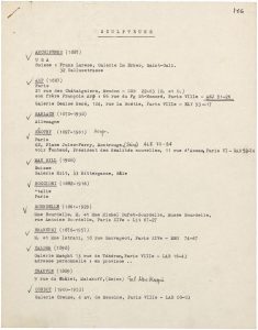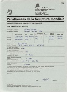 Λίστα καλλιτεχνών που συμμετέχουν στην Μπιεννάλε Γλυπτικής (‘Παναθήναια’) 1965 Pablo Picasso (1881 - 1973) ; Joan Miró (1893 - 1983) ; Τώνης Π. Σπητέρης (1910 - 1986) ; Pierre-Auguste Renoir (1841 - 1919) ; Salvador Dalí (1904 - 1989) ; Alexander Calder (1898 - 1976) ; Auguste Rodin (1840 - 1917) ; Jean Arp (1886 - 1966) ; Max Ernst ; Henri Matisse (1869 - 1954) ; Georges Braque (1882 - 1963) ; Fernand Léger (1881 - 1955) ; Jacques Lipchitz ; Morice Lipsi (1898 - 1986) ; Henri Laurens (1885 - 1954) ; Edgar Degas (1834 - 1917) ; Amedeo Modigliani (1884 - 1920) ; Aristide Maillol (1861 - 1944) ; Jean Fautrier (1898 - 1964) ; Isamu Noguchi (1904 - 1988) ; Germaine Richier (1904 - 1959) ; Alberto Giacometti (1901 - 1966) ; Ossip Zadkine (1890 - 1967) ; Jean Dubuffet (1901 - 1985) ; Raymond Duchamp-Villon (1876 - 1918) ; Honoré Daumier (1808 - 1879) ; Charles Despiau (1874 - 1946) ; Otto Freundlich (1878 - 1943) ; Julio Gonzalez (1876 - 1942) ; Pablo Gargallo (1881 - 1934) ; Charles Malfray ; Sesostris Vitullo ; Etienne Beöthy (1897 - 1961) ; Pablo Curatella Manes ; Manolo (1872 - 1945) ; Constantin Brancusi (1876 - 1957) ; Alexander Archipenko (1887 - 1964) ; Jean Peyrissac (1895 - 1974) ; François Pompon (1885 - 1933) ; Joseph Csaky (1888 - 1971) ; Anton Prinner (1902 - 1983) ; Jean Chauvin ; Honorio Garcia Condoy ; Peter Stackpole (1913 - 1997) ; Cleopatre Bourdelle-Sevastos (1892 - 1972)