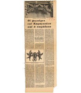«Πενήντα χρόνια Καραγκιόζης» Κίτσος Α. Μακρής (1917 - 1988) ; Ιωάννης-Μιχαήλ Παναγιωτόπουλος (1901 - 1982) ; Γιώργος Σικελιώτης (1917 - 1984) ; Γιάννης Τσαρούχης (1910 - 1989) ; Ιάκωβος Καμπανέλλης (1921 - 2011) ; Άγγελος Σικελιανός (1884 - 1951) ; Ευγένιος Σπαθάρης (1924 - 2009) ; Σωτήρης Σπαθάρης (1892 - 1974) ; Θανάσης Φωτιάδης (1921 - 1989) ; Γιώργος Χαρίδημος ( ; - 1996 ) ; Γιώργος Θεοτοκάς (1905 - 1966) ; Δημήτριος Σ. Λουκάτος (1908 - 2003) ; Έλλη Παπαδημητρίου (1906 - 1933) ; Κώστας Νίτσος (1920 - 1995) ; Τάκης Δόξας (1913 - 1976) ; Γιάννης Βλαχογιάννης (1867 - 1945) ; Αγγελική Χατζημιχάλη (1895 - 1965) ; Σπύρος Κοκκίνης (1928) ; Φώτος Πολίτης (1890 - 1934) ; Μάρκος Ξάνθος ; Κατερίνα Κακούρη ; Γιάννης Ιατρίδης ; Αντώνης Πάστας ; Γιώργος Νταμαδάκης ( ; - 1943) ; Μήτσος Μανωλόπουλος (1870 - 1957) ; Θανάσης Δεδούσαρος ; Γιώργος Κουτσούρης ; Γιάννης Κόκας ; Αντώνης Ποριώτης ; Γιάννης Γαλιλαίος ; Απόστολος Καραστεργιόπουλος ; Μπαρμπα Θόδωρος ο Καλαματιανός ; Σπύρος Βωβός ; Γιάννης Μώρος
