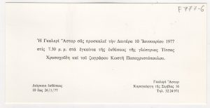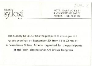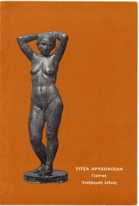 Έκθεση “Greek Artists” Βάσω Κατράκη (1914 - 1988) ; Ιωάννα Σπητέρη-Βεροπούλου (1920 - 2000) ; Τέρψη Κυριακού (1916 - 1993) ; Ντιάνα Αντωνακάτου (1922 - 2011) ; Ισαβέλλα Χαρμπούρη (1905 - 1988) ; Άλεξ Μυλωνά (1923 - 2016) ; Κούλα Μπεκιάρη (1905 - 1992) ; Τίτσα Χρυσοχοϊδη (1906 - 1990) ; Χαρά Βιέννα-Παπαγεωργίου (1922 - 1982) ; Άννα Βορνόζη (1914 - ;) ; Χαρίκλεια Αλεξανδρίδου-Στεφανοπούλου (1889 - 1963) ; Ελένη Θεοχάρη-Περάκη ; Μαρία Αναγνωστοπούλου-Βρανίκα (1890 - 1971) ; Ρέα Λεονταρίτου ; Νίτσα Μακαρώνα ; Έφη Π. Μιχελή (1906 - 1984) ; Τζένη Αργυρού-Λυμπεροπούλου (1902 - 1975) ; Μαρία Σπέντζα (1925 - 2011) ; Πηνελόπη Οικονομίδη (1885 - 1967) ; Αγλαϊα Παπά (1904 - 1984) ; Ιουλία Παπανούτσου (1900 - 1973) ; Γιάννα Περσάκη ; Ελένη Πίταρη-Πάγκαλου ; Ελένη Κωνσταντινίδη (1910 - 1988) ; Ανθούλα Ξανθού-Σταυριανού (20ος αιώνας) ; Νέλλη Κυριακού-Καλλιγά ; Μαίρη Τριλίβα-Μαυρικίου ( 1918 - ; ) ; Ζωή Γκλαβάνη (1929) ; Ρένα Καλαντζή-Τσούχλου ; Δέσπω Λαζαρίδου-Παρασκευαΐδου ; Λέλα Φλώρου-Πολυκανδριώτου (20ος αιώνας)