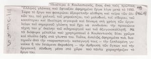 Κατάλογος Ελλήνων καλλιτεχνών Κώστας Ανδρέου (1917 - 2007) ; Τώνης Π. Σπητέρης (1910 - 1986) ; Ιωάννα Σπητέρη-Βεροπούλου (1920 - 2000) ; Μιχάλης Τόμπρος (1889 - 1974) ; Δημήτρης Χατζής (1921 - 2006) ; Μπέλλα Ραφτοπούλου (1902 - 1992) ; Γαβριέλλα Σίμωσι (1926 - 1999) ; Σωσώ Χουτοπούλου-Κονταράτου (1923 - 1984) ; Χρήστος Καπράλος (1909 - 1993) ; Γεράσιμος Σκλάβος (1927 - 1967) ; Αντώνης Καραχάλιος ; Γιώργος Ζογγολόπουλος (1903 - 2004) ; Θανάσης Απάρτης (1899 - 1972) ; Φρόσω Ευθυμιάδη-Μενεγάκη ; Αχιλλέας Απέργης (1909 - 1986) ; Αντώνης Σώχος (1888 - 1975) ; Άλεξ Μυλωνά (1923 - 2016) ; Κώστας Κουλεντιανός (1918 - 1995) ; Κώστας Βαλσάμης (1908 - 2003) ; Ιωάννης Αβραμίδης (1922 - 2016) ; Θόδωρος (1931 - 2018) ; Τάκις (1925 - 2019) ; Χρύσα (Βαρδέα) (1933 - 2013) ; Λάζαρος Λαμέρας (1913 - 1998) ; Φιλόλαος (1923 - 2010) ; Γεώργιος Γεωργίου (1916 - ; ) ; Γιάννης Παππάς (1913 - 2005) ; Νικόλαος Ίκαρης (1920 - 1994) ; Δημήτρης Καλαμάρας (1924 - 1997) ; Κώστας Κλουβάτος (1923 - 2007) ; Λουκάς Σαμαράς (1936) ; Λεκάκης Μιχάλης ; Κλέαρχος Λουκόπουλος (1906 - 1995) ; Αγλαΐα Λυμπεράκη (1923 - 1985) ; Δημήτρης Αρμακόλας (1939 - 2009) ; Γιώργος Νικολαΐδης (1924 - 2001) ; Κοσμάς Ξενάκης (1925 - 1984) ; Ναυσικά Πάστρα (1921 - 2011) ; Πολύγνωτος Βαγής (1894 - 1965) ; Νικόλαος Περαντινός (1910 - 1991) ; Αντώνης Μαυρίκιος
