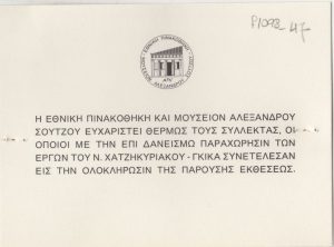 Κατάλογος Ελλήνων καλλιτεχνών Κώστας Ανδρέου (1917 - 2007) ; Τώνης Π. Σπητέρης (1910 - 1986) ; Ιωάννα Σπητέρη-Βεροπούλου (1920 - 2000) ; Μιχάλης Τόμπρος (1889 - 1974) ; Δημήτρης Χατζής (1921 - 2006) ; Μπέλλα Ραφτοπούλου (1902 - 1992) ; Γαβριέλλα Σίμωσι (1926 - 1999) ; Σωσώ Χουτοπούλου-Κονταράτου (1923 - 1984) ; Χρήστος Καπράλος (1909 - 1993) ; Γεράσιμος Σκλάβος (1927 - 1967) ; Αντώνης Καραχάλιος ; Γιώργος Ζογγολόπουλος (1903 - 2004) ; Θανάσης Απάρτης (1899 - 1972) ; Φρόσω Ευθυμιάδη-Μενεγάκη ; Αχιλλέας Απέργης (1909 - 1986) ; Αντώνης Σώχος (1888 - 1975) ; Άλεξ Μυλωνά (1923 - 2016) ; Κώστας Κουλεντιανός (1918 - 1995) ; Κώστας Βαλσάμης (1908 - 2003) ; Ιωάννης Αβραμίδης (1922 - 2016) ; Θόδωρος (1931 - 2018) ; Τάκις (1925 - 2019) ; Χρύσα (Βαρδέα) (1933 - 2013) ; Λάζαρος Λαμέρας (1913 - 1998) ; Φιλόλαος (1923 - 2010) ; Γεώργιος Γεωργίου (1916 - ; ) ; Γιάννης Παππάς (1913 - 2005) ; Νικόλαος Ίκαρης (1920 - 1994) ; Δημήτρης Καλαμάρας (1924 - 1997) ; Κώστας Κλουβάτος (1923 - 2007) ; Λουκάς Σαμαράς (1936) ; Λεκάκης Μιχάλης ; Κλέαρχος Λουκόπουλος (1906 - 1995) ; Αγλαΐα Λυμπεράκη (1923 - 1985) ; Δημήτρης Αρμακόλας (1939 - 2009) ; Γιώργος Νικολαΐδης (1924 - 2001) ; Κοσμάς Ξενάκης (1925 - 1984) ; Ναυσικά Πάστρα (1921 - 2011) ; Πολύγνωτος Βαγής (1894 - 1965) ; Νικόλαος Περαντινός (1910 - 1991) ; Αντώνης Μαυρίκιος