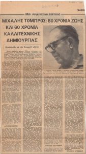 Μιχάλης Τόμπρος. Γλυπτική-Σχέδια, Γκαλερί Χρυσόθεμις, Αθήνα, 05/04/1982 - 05/05/1982