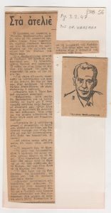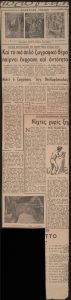 «Εκθέσεις ζωγραφικής. Μία ωραία πρωτοβουλία υπέρ των οικογενειών των Κυπρίων κρατουμένων» Τώνης Π. Σπητέρης (1910 - 1986) ; Βάσω Κατράκη (1914 - 1988) ; Σπύρος Βασιλείου (1902 - 1985) ; Ορέστης Κανέλλης (1910 - 1979) ; Τάσσος Α. (1914 - 1985) ; Νικόλαος Χατζηκυριάκος-Γκίκας (1906 - 1994) ; Γιάννης Μόραλης (1916 - 2009) ; Γεώργιος Γουναρόπουλος (1889 - 1977) ; Σπύρος Παπαλουκάς (1892 - 1957) ; Γιάννης Μηταράκης (1898 - 1963) ; Αγήνωρ Αστεριάδης (1898 - 1977) ; Γιώργος Σικελιώτης (1917 - 1984) ; Γιάννης Σπυρόπουλος (1912 - 1990) ; Γιάννης Τσαρούχης (1910 - 1989) ; Δημήτρης Γιαννουκάκης (1898 - 1991) ; Χρήστος Καπράλος (1909 - 1993) ; Λίλη Αρλιώτη (1908 - 1979) ; Φρόσω Ευθυμιάδη-Μενεγάκη ; Αλέκος Κοντόπουλος (1904 - 1975) ; Ευθύμιος Παπαδημητρίου (1895 - 1958) ; Γιώργος Μπουζιάνης (1885 - 1959) ; Γιάννης Κεφαλληνός (1894 - 1957) ; Περικλής Βυζάντιος (1893 - 1972) ; Δημήτρης Γιολδάσης (1897 - 1993) ; Κωνσταντίνος Γραμματόπουλος (1916 - 2003) ; Χρίστος Δαγκλής (1916 - 1991) ; Άγγελος Θεοδωρόπουλος (1883 - 1965) ; Γεώργιος Κοσμαδόπουλος (1895 - 1967) ; Κλέαρχος Λουκόπουλος (1906 - 1995) ; Αγλαϊα Παπά (1904 - 1984) ; Φώτης Φωτιάδης