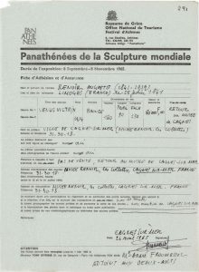 «Καλλιτέχνες παγκοσμίου φήμης στα “Παναθήναια της Παγκοσμίου Γλυπτικής”» Pablo Picasso (1881 - 1973) ; Joan Miró (1893 - 1983) ; Pierre-Auguste Renoir (1841 - 1919) ; Salvador Dalí (1904 - 1989) ; Alexander Calder (1898 - 1976) ; Auguste Rodin (1840 - 1917) ; Henry Moore (1898 - 1986) ; Jean Arp (1886 - 1966) ; Henri Matisse (1869 - 1954) ; Georges Braque (1882 - 1963) ; Jacques Lipchitz ; Morice Lipsi (1898 - 1986) ; Henri Laurens (1885 - 1954) ; Edgar Degas (1834 - 1917) ; Marino Marini (1901 - 1980) ; Amedeo Modigliani (1884 - 1920) ; Ivan Mestrovic (1883 - 1962) ; Jean Fautrier (1898 - 1964) ; Isamu Noguchi (1904 - 1988) ; Alberto Giacometti (1901 - 1966) ; Marc Chagall (1887 - 1985) ; Ossip Zadkine (1890 - 1967) ; Jean Dubuffet (1901 - 1985) ; Marcel Duchamp (1887 - 1968) ; Raymond Duchamp-Villon (1876 - 1918) ; Honoré Daumier (1808 - 1879) ; André Derain (1880 - 1954) ; Jacob Epstein (1880 - 1959) ; Julio Gonzalez (1876 - 1942) ; Pablo Gargallo (1881 - 1934) ; Marcel Gimond (1894 - 1961) ; Barbara Hepworth (1903 - 1975) ; Wilhelm Lehmbruck ; George Minne ; Charles Malfray ; Antoine Pevsner ; Ernst Barlach (1870 - 1938) ; Etienne Beöthy (1897 - 1961) ; Max Bill (1908 - 1994) ; Umberto Boccioni (1882 - 1916) ; Pablo Curatella Manes ; Constantin Brancusi (1876 - 1957) ; Alexander Archipenko (1887 - 1964) ; Antoine Bourdelle (1861 - 1929) ; Jean Peyrissac (1895 - 1974) ; Joseph Csaky (1888 - 1971) ; Fritz Wotruba (1907 - 1975) ; Henri Hamm ; Anton Prinner (1902 - 1983) ; Jean Chauvin ; Honorio Garcia Condoy