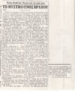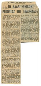 «Εκθέσεις ζωγραφικής. Μία ωραία πρωτοβουλία υπέρ των οικογενειών των Κυπρίων κρατουμένων» Τώνης Π. Σπητέρης (1910 - 1986) ; Βάσω Κατράκη (1914 - 1988) ; Σπύρος Βασιλείου (1902 - 1985) ; Ορέστης Κανέλλης (1910 - 1979) ; Τάσσος Α. (1914 - 1985) ; Νικόλαος Χατζηκυριάκος-Γκίκας (1906 - 1994) ; Γιάννης Μόραλης (1916 - 2009) ; Γεώργιος Γουναρόπουλος (1889 - 1977) ; Σπύρος Παπαλουκάς (1892 - 1957) ; Γιάννης Μηταράκης (1898 - 1963) ; Αγήνωρ Αστεριάδης (1898 - 1977) ; Γιώργος Σικελιώτης (1917 - 1984) ; Γιάννης Σπυρόπουλος (1912 - 1990) ; Γιάννης Τσαρούχης (1910 - 1989) ; Δημήτρης Γιαννουκάκης (1898 - 1991) ; Χρήστος Καπράλος (1909 - 1993) ; Λίλη Αρλιώτη (1908 - 1979) ; Φρόσω Ευθυμιάδη-Μενεγάκη ; Αλέκος Κοντόπουλος (1904 - 1975) ; Ευθύμιος Παπαδημητρίου (1895 - 1958) ; Γιώργος Μπουζιάνης (1885 - 1959) ; Γιάννης Κεφαλληνός (1894 - 1957) ; Περικλής Βυζάντιος (1893 - 1972) ; Δημήτρης Γιολδάσης (1897 - 1993) ; Κωνσταντίνος Γραμματόπουλος (1916 - 2003) ; Χρίστος Δαγκλής (1916 - 1991) ; Άγγελος Θεοδωρόπουλος (1883 - 1965) ; Γεώργιος Κοσμαδόπουλος (1895 - 1967) ; Κλέαρχος Λουκόπουλος (1906 - 1995) ; Αγλαϊα Παπά (1904 - 1984) ; Φώτης Φωτιάδης