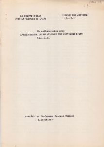 «Καλλιτέχνες παγκοσμίου φήμης στα “Παναθήναια της Παγκοσμίου Γλυπτικής”» Pablo Picasso (1881 - 1973) ; Joan Miró (1893 - 1983) ; Pierre-Auguste Renoir (1841 - 1919) ; Salvador Dalí (1904 - 1989) ; Alexander Calder (1898 - 1976) ; Auguste Rodin (1840 - 1917) ; Henry Moore (1898 - 1986) ; Jean Arp (1886 - 1966) ; Henri Matisse (1869 - 1954) ; Georges Braque (1882 - 1963) ; Jacques Lipchitz ; Morice Lipsi (1898 - 1986) ; Henri Laurens (1885 - 1954) ; Edgar Degas (1834 - 1917) ; Marino Marini (1901 - 1980) ; Amedeo Modigliani (1884 - 1920) ; Ivan Mestrovic (1883 - 1962) ; Jean Fautrier (1898 - 1964) ; Isamu Noguchi (1904 - 1988) ; Alberto Giacometti (1901 - 1966) ; Marc Chagall (1887 - 1985) ; Ossip Zadkine (1890 - 1967) ; Jean Dubuffet (1901 - 1985) ; Marcel Duchamp (1887 - 1968) ; Raymond Duchamp-Villon (1876 - 1918) ; Honoré Daumier (1808 - 1879) ; André Derain (1880 - 1954) ; Jacob Epstein (1880 - 1959) ; Julio Gonzalez (1876 - 1942) ; Pablo Gargallo (1881 - 1934) ; Marcel Gimond (1894 - 1961) ; Barbara Hepworth (1903 - 1975) ; Wilhelm Lehmbruck ; George Minne ; Charles Malfray ; Antoine Pevsner ; Ernst Barlach (1870 - 1938) ; Etienne Beöthy (1897 - 1961) ; Max Bill (1908 - 1994) ; Umberto Boccioni (1882 - 1916) ; Pablo Curatella Manes ; Constantin Brancusi (1876 - 1957) ; Alexander Archipenko (1887 - 1964) ; Antoine Bourdelle (1861 - 1929) ; Jean Peyrissac (1895 - 1974) ; Joseph Csaky (1888 - 1971) ; Fritz Wotruba (1907 - 1975) ; Henri Hamm ; Anton Prinner (1902 - 1983) ; Jean Chauvin ; Honorio Garcia Condoy