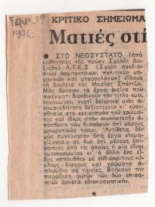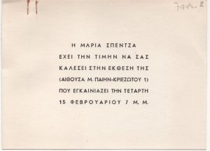 Ομαδική έκθεση «Ελληνικός Μήνας στη Βιέννη». Πάνος Βαλσαμάκης (1900 - 1986) ; Δημήτρης Γιαννουκάκης (1898 - 1991) ; Θόδωρος Μάρκελλος (1925 - 2015) ; Γιάννης Γαΐτης (1923 - 1984) ; Κούλα Μπεκιάρη (1905 - 1992) ; Δημήτρης Μυταράς (1934 - 2017) ; Πιπίτσα Φιλιππίδη (1923 - 1995) ; Χαρίκλεια Φωτίου-Χατζησάββα (1918 - 1984) ; Κωνσταντίνος Γιαννακόπουλος (1927 - 2000) ; Αντώνης Απέργης (1938 - 2018) ; Τάκης Παρλαβάντζας ; Πέτρος Ζουμπουλάκης (1937) ; Θάλεια Κλεώπα (1928) ; Γεώργιος Λολοσίδης (1937 - 2015) ; Μποστ (1918 - 1995) ; Μαρία Σπέντζα (1925 - 2011) ; Μανόλης Πηλαδάκης (1927) ; Μερόπη Πρέκα-Στεφανάτου (1934 - 2025) ; Πάρις Πρέκας (1926 - 1999) ; Λιλή Αντωνιάδη-Στεφανάκη (1938) ; Ιωάννης Σεργουλόπουλος ; Βασίλειος Σπηλιωτόπουλος ; Σταμάτης-Παναγιώτης Μεταξάς (1936) ; Στέφανος Δασκαλάκης (1952) ; Ιωάννης Παπανελόπουλος (1936) ; Άγγελος Κουγιουμτζής (1920 - 2011) ; Σπύρος Κουρσάρης ; Κωνσταντίνος Παπασταμούλης ; Γιάννης Πούλιος