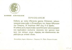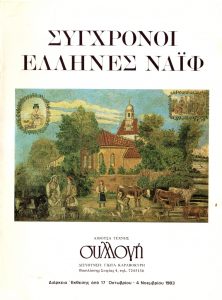 Έκθεση “Σύγχρονοι Έλληνες Ναϊφ” Αγήνωρ Αστεριάδης (1898 - 1977) ; Μαρία Φιοράκη (1912 - 1970) ; Θεόφιλος (Χατζημιχαήλ) (1871 - 1934) ; Μιχαήλ Κκάσιαλος (1885 - 1974) ; Στέλιος Λυδάκης (1933) ; Νίκος Γιαλούρης (1928 - 2003) ; Ευγένιος Σπαθάρης (1924 - 2009) ; Κατερίνα Φιλδισάκου (1926) ; Σώτος Παπασπυρόπουλος ; Νικόλαος Χριστόπουλος (1880 - 1967) ; Άννα Βορνόζη (1914 - ;) ; Αριάδνη Βορνόζη (1915 - ;) ; Δημήτρης Γέρος (1948) ; Νίκος I. Γρηγοράκης (1944 - 2022) ; Ουρανία Δημουλά-Ψυρροπούλου (1910 - ; ) ; Τζένη Δρόσου (1928) ; Λία Αγαπίου-Σουλή (1933) ; Χρήστος Καγκαράς (1918 - 2010) ; Γιώργος Κεραμίδας (1933) ; Ράλλης Κοψίδης (1929 - 2010) ; Δημήτρης Κωστόπουλος (1939) ; Έφη Π. Μιχελή (1906 - 1984) ; Μποστ (Μέντης Μποσταντζόγλου) (1918 - 1995) ; Μαρία Πωπ (1925 - 2009) ; Τάκης Σιδέρης (1929) ; Γιάννα Ξέρα (1956) ; Γιώργος Ρήγας (1921 - 2014) ; Ορέστης Βρέντζος ; Γιάννης Θεοφίλης (1926 - 2006) ; Σταμάτης Λαζάρου ; Αντώνης Μαρκάκης ; Αλκιβιάδης Σκουλάς ; Νίκη Ελευθεριάδη-Βέργου (1954) ; Γιάννης Μητράκας (1936) ; Ειρήνη Ταχατάκη ; Στέλιος Γαβριήλ ; Τζέννυ Παπαδάκη-Μελισσηνού ; Άγγελος Κουγιουμτζής (1920 - 2011) ; Αθανάσιος Γουδής ( 1914 - ;) ; Στρατής Αναστασέλλης (1908 - 1997) ; Λευτέρης Θεοδώρου ; Καίτη Νικολάου (1926) ; Κωνσταντίνος Σέρβος ; Πολύδωρος Αεράκης (20ος αιώνας) ; Δημήτρης Βανίδης ; Δήμητρα Γκάβα ; Ανδρέας Καλογεράς ; Αριστείδης Λαούδης ; Αικατερίνη Μπελδέκου (1919 - ; ) ; Μόνα Novotny-Κουγιουμτζή ; Μιχάλης Πανταζής ; Γεράσιμος Παπαδάτος ; Μανώλης Σαλούστρος ; Ισμήνη Σηφάκη ; Ευάγγελος Τριαντάφυλλος ; Λεωνίδας Τσαλαμπαμπούνης (1901 - 1976) ; Σοφία Τσάτσου