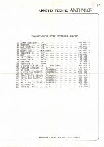 Κατάλογος Ελλήνων καλλιτεχνών Κώστας Ανδρέου (1917 - 2007) ; Τώνης Π. Σπητέρης (1910 - 1986) ; Ιωάννα Σπητέρη-Βεροπούλου (1920 - 2000) ; Μιχάλης Τόμπρος (1889 - 1974) ; Δημήτρης Χατζής (1921 - 2006) ; Μπέλλα Ραφτοπούλου (1902 - 1992) ; Γαβριέλλα Σίμωσι (1926 - 1999) ; Σωσώ Χουτοπούλου-Κονταράτου (1923 - 1984) ; Χρήστος Καπράλος (1909 - 1993) ; Γεράσιμος Σκλάβος (1927 - 1967) ; Αντώνης Καραχάλιος ; Γιώργος Ζογγολόπουλος (1903 - 2004) ; Θανάσης Απάρτης (1899 - 1972) ; Φρόσω Ευθυμιάδη-Μενεγάκη ; Αχιλλέας Απέργης (1909 - 1986) ; Αντώνης Σώχος (1888 - 1975) ; Άλεξ Μυλωνά (1923 - 2016) ; Κώστας Κουλεντιανός (1918 - 1995) ; Κώστας Βαλσάμης (1908 - 2003) ; Ιωάννης Αβραμίδης (1922 - 2016) ; Θόδωρος (1931 - 2018) ; Τάκις (1925 - 2019) ; Χρύσα (Βαρδέα) (1933 - 2013) ; Λάζαρος Λαμέρας (1913 - 1998) ; Φιλόλαος (1923 - 2010) ; Γεώργιος Γεωργίου (1916 - ; ) ; Γιάννης Παππάς (1913 - 2005) ; Νικόλαος Ίκαρης (1920 - 1994) ; Δημήτρης Καλαμάρας (1924 - 1997) ; Κώστας Κλουβάτος (1923 - 2007) ; Λουκάς Σαμαράς (1936) ; Λεκάκης Μιχάλης ; Κλέαρχος Λουκόπουλος (1906 - 1995) ; Αγλαΐα Λυμπεράκη (1923 - 1985) ; Δημήτρης Αρμακόλας (1939 - 2009) ; Γιώργος Νικολαΐδης (1924 - 2001) ; Κοσμάς Ξενάκης (1925 - 1984) ; Ναυσικά Πάστρα (1921 - 2011) ; Πολύγνωτος Βαγής (1894 - 1965) ; Νικόλαος Περαντινός (1910 - 1991) ; Αντώνης Μαυρίκιος