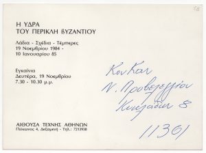 Διαγωνισμός-έκθεση “Ο Βυζάντιος και οι νέοι” Γεώργιος Σταύρου ; Ηρώ Κωνσταντοπούλου ; Γιάννης Νικολόπουλος ; Θεόδωρος Παπαγιάννης (1942) ; Αποστόλης Τσιρογιάννης (1946) ; Περικλής Βυζάντιος (1893 - 1972) ; Ντέπη Φελουκατζή (1941) ; Δημήτρης Κούκος ; Λεωνίδας Χρηστάκης (1929 - 2009) ; Μαρίνος Χριστακόπουλος (1946) ; Μιχάλης Γεωργάς (1947) ; Ανδρέας Γκολφινόπουλος ; Νίκος Ζουμπούλης (1953) ; Παύλος Σάμιος (1948 - 2021) ; Ευάγγελος Κουζούνης ; Απόστολος Μητσάτσος ; Λάζαρος Παούρης (1950) ; Στάθης Πετρόπουλος (1944 - 2008) ; Δημήτρης Σακελλίων (1947) ; Γιώργος Σταθόπουλος (1944) ; Μαριλένα Λιακοπούλου ( ; - 2016) ; Χρίστος Τζιβέλος ; Μαρίνα Βασίλογλου-Αλευροπούλου (1945) ; Λευτέρης Βαλάκας (1944 - 1982) ; Καλλία ; Καραβίτης ; Νίκος Παρασκευάς ; Νίκος Σημηριώτης ; Κροντήρης ; Κυρτεγος ; Γιώργος Παπαδούκας ; Σταυρακάκη ; Αλέκα Γάτου ; Άλλεν-Ευσταθίου Τζούντιθ (1945) ; Μασονίδης ; Μπαχαρίου ; Γιώργος Χουλιαράς, εικαστικός (1947)