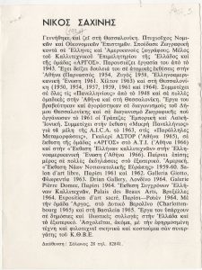 Βιογραφικά σημειώματα καλλιτεχνών Νίκος Εγγονόπουλος (1907 - 1985) ; Κώστας Ανδρέου (1917 - 2007) ; Τώνης Π. Σπητέρης (1910 - 1986) ; Βάσω Κατράκη (1914 - 1988) ; Ιωάννα Σπητέρη-Βεροπούλου (1920 - 2000) ; Μιχάλης Τόμπρος (1889 - 1974) ; Τάσσος (Αναστάσιος Αλεβίζος) (1914 - 1985) ; Νικόλαος Χατζηκυριάκος-Γκίκας (1906 - 1994) ; Γιάννης Μόραλης (1916 - 2009) ; Γεώργιος Γουναρόπουλος (1889 - 1977) ; Σπύρος Παπαλουκάς (1892 - 1957) ; Παύλος (Διονυσόπουλος) (1930 - 2019) ; Γιάννης Μηταράκης (1898 - 1963) ; Τζον Χριστοφόρου (1921 - 2014) ; Δημήτρης Περδικίδης (1922 - 1989) ; Νίκος Σαχίνης (1924 - 1989) ; Θάνος Τσίγκος (1914 - 1965) ; Γαβριέλλα Σίμωσι (1926 - 1999) ; Γιάννης Σπυρόπουλος (1912 - 1990) ; Γιάννης Τσαρούχης (1910 - 1989) ; Κώστας Τσόκλης (1930) ; Γιώργος Σκοτεινός (1937 - 2022) ; Γιώργος Ζογγολόπουλος (1903 - 2004) ; Λίλη Αρλιώτη (1908 - 1979) ; Φρόσω Ευθυμιάδη-Μενεγάκη ; Δανιήλ (Παναγόπουλος) (1924 - 2008) ; Αχιλλέας Απέργης (1909 - 1986) ; Αλέκος Κοντόπουλος (1904 - 1975) ; Κώστας Κουλεντιανός (1918 - 1995) ; Γιώργος Μπουζιάνης (1885 - 1959) ; Γιάννης Γαΐτης (1923 - 1984) ; Ιωάννης Αβραμίδης (1922 - 2016) ; Κούλα Μπεκιάρη (1905 - 1992) ; Χρίστος Καράς (1930 - 2023) ; Τάκις (Βασιλάκης Παναγιώτης) (1925 - 2019) ; Φιλόλαος (Τλούπας) (1923 - 2010) ; Άλκης Πιερράκος (1920 - 2017) ; Γιάννης Κουνέλλης (1936 - 2017) ; Βλάσης Κανιάρης (1928 - 2011) ; Κώστας Καραχάλιος (1923 - 2007) ; Κλέαρχος Λουκόπουλος (1906 - 1995) ; Αγλαΐα Λυμπεράκη (1923 - 1985) ; Γιώργος Μαυροΐδης (1912 - 2003) ; Μιχαήλ Μιχαηλίδης (1923 - 2015) ; Ιάσων Μολφέσης (1925 - 2009)