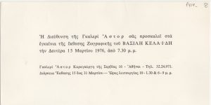 Έκθεση “Greek Artists” Βάσω Κατράκη (1914 - 1988) ; Ιωάννα Σπητέρη-Βεροπούλου (1920 - 2000) ; Τέρψη Κυριακού (1916 - 1993) ; Ντιάνα Αντωνακάτου (1922 - 2011) ; Ισαβέλλα Χαρμπούρη (1905 - 1988) ; Άλεξ Μυλωνά (1923 - 2016) ; Κούλα Μπεκιάρη (1905 - 1992) ; Τίτσα Χρυσοχοϊδη (1906 - 1990) ; Χαρά Βιέννα-Παπαγεωργίου (1922 - 1982) ; Άννα Βορνόζη (1914 - ;) ; Χαρίκλεια Αλεξανδρίδου-Στεφανοπούλου (1889 - 1963) ; Ελένη Θεοχάρη-Περάκη ; Μαρία Αναγνωστοπούλου-Βρανίκα (1890 - 1971) ; Ρέα Λεονταρίτου ; Νίτσα Μακαρώνα ; Έφη Π. Μιχελή (1906 - 1984) ; Τζένη Αργυρού-Λυμπεροπούλου (1902 - 1975) ; Μαρία Σπέντζα (1925 - 2011) ; Πηνελόπη Οικονομίδη (1885 - 1967) ; Αγλαϊα Παπά (1904 - 1984) ; Ιουλία Παπανούτσου (1900 - 1973) ; Γιάννα Περσάκη ; Ελένη Πίταρη-Πάγκαλου ; Ελένη Κωνσταντινίδη (1910 - 1988) ; Ανθούλα Ξανθού-Σταυριανού (20ος αιώνας) ; Νέλλη Κυριακού-Καλλιγά ; Μαίρη Τριλίβα-Μαυρικίου ( 1918 - ; ) ; Ζωή Γκλαβάνη (1929) ; Ρένα Καλαντζή-Τσούχλου ; Δέσπω Λαζαρίδου-Παρασκευαΐδου ; Λέλα Φλώρου-Πολυκανδριώτου (20ος αιώνας)