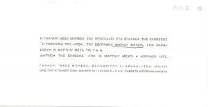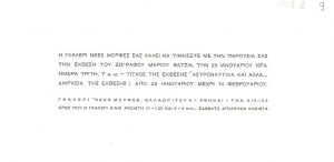 Έκθεση “Πανόραμα Ελληνικής Ζωγραφικής 1950-1975” Γιώργος Ιωάννου, λογοτέχνης (1927 - 1985) ; Γιώργος Τούγιας (1922 - 1994) ; Σωτήρης Σόρογκας (1936) ; Λουκάς Βενετούλιας (1930 - 1984) ; Νίκος Σαχίνης (1924 - 1989) ; Μανώλης Καλλιγιάννης ; Γιάννης Μιγάδης (1926 - 2017) ; Γιώργος Σκοτεινός (1937) ; Φώτης Σαρρής ; Γιώργος Βακιρτζής (1923 - 1988) ; Θόδωρος Μάρκελλος (1925 - 2015) ; Γιάννης Γαΐτης (1923 - 1984) ; Δημήτρης Μυταράς (1934 - 2017) ; Παντελής Ξαγοράρης (1929 - 2000) ; Χρίστος Καράς (1930 - 2023) ; Γιώργος Τουζένης (1957) ; Μάριος Βατζιάς (1926 - 2008) ; Γιώργος Βογιατζής (1935 - 1993) ; Βασίλης Κυπραίος ; Στέλιος Βότσης (1922 - 2012) ; Μιχάλης Γεωργάς (1947) ; Νικόλαος Γεωργιάδης (1925 - 2001) ; Παναγιώτης Τέτσης (1925 - 2016) ; Νέλλα Γκόλαντα (1941 - 2023) ; Δανιήλ Γουναρίδης (1934) ; Αχιλλέας Δρούγκας (1940) ; Πέτρος Ζουμπουλάκης ; Νίκη Καναγκίνη (1933 - 2008) ; Κώστας Ηλιάκης ; Μάκης Θεοφυλακτόπουλος (1939 - 2023) ; Λευτέρης Κανακάκις (1934 - 1985) ; Βλάσης Κανιάρης (1928 - 2011) ; Σαράντης Καραβούζης (1938 - 2011) ; Τάκης Κατσουλίδης (1933) ; Βασίλης Κελαϊδής (1938) ; Θάλεια Κλεώπα (1928) ; Δημήτρης Κοντός (1931 - 1996) ; Νίκος Κουρούσης (1937) ; Στάθης Λογοθέτης (1925 - 1997) ; Θεόδωρος Μανωλίδης ; Στέλιος Μαυρομάτης (1930 - 2020) ; Γιάννης Μιχαηλίδης (1940) ; Γιάννης Μίχας (1938 - 2008) ; Παύλος Μοσχίδης (1927 - 2004) ; Χρόνης Μπότσογλου (1941 - 2022) ; Μαρία Σπέντζα (1925 - 2011) ; Κλειώ Νάτση (1929 - 2024) ; Μπία Ντάβου (1932 - 1996) ; Θωμάς Παπαδοπεράκης ; Μανόλης Πηλαδάκης (1927) ; Πάρις Πρέκας (1926 - 1999) ; Λευτέρης Ρόρρος (1939 - 1967) ; Δημήτρης Σακελλίων ; Τάκης Σιδέρης (1929) ; Ζωή Σκιαδαρέση (1934 - 2014) ; Θανάσης Στεφόπουλος (1928 - 2012)