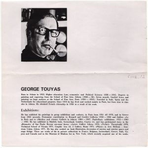 Έκθεση “Πανόραμα Ελληνικής Ζωγραφικής 1950-1975” Γιώργος Ιωάννου (1926 - 2017) ; Γιώργος Τούγιας (1922 - 1994) ; Σωτήρης Σόρογκας (1936) ; Λουκάς Βενετούλιας (1930 - 1984) ; Νίκος Σαχίνης (1924 - 1989) ; Μανώλης Καλλιγιάννης ; Γιάννης Μιγάδης (1926 - 2017) ; Γιώργος Σκοτεινός (1937) ; Φώτης Σαρρής ; Γιώργος Βακιρτζής (1923 - 1988) ; Θόδωρος Μάρκελλος (1925 - 2015) ; Γιάννης Γαΐτης (1923 - 1984) ; Δημήτρης Μυταράς (1934 - 2017) ; Παντελής Ξαγοράρης (1929 - 2000) ; Χρίστος Καράς (1930 - 2023) ; Γιώργος Τουζένης (1957) ; Μάριος Βατζιάς (1926 - 2008) ; Γιώργος Βογιατζής (1935 - 1993) ; Βασίλης Κυπραίος (1936 - 2021) ; Στέλιος Βότσης (1922 - 2012) ; Μιχάλης Γεωργάς (1947) ; Νικόλαος Γεωργιάδης (1925 - 2001) ; Παναγιώτης Τέτσης (1925 - 2016) ; Νέλλα Γκόλαντα (1941 - 2023) ; Δανιήλ Γουναρίδης (1934) ; Αχιλλέας Δρούγκας (1940) ; Πέτρος Ζουμπουλάκης (1937) ; Νίκη Καναγκίνη (1933 - 2008) ; Κώστας Ηλιάκης ; Μάκης Θεοφυλακτόπουλος (1939 - 2023) ; Λευτέρης Κανακάκις (1934 - 1985) ; Βλάσης Κανιάρης (1928 - 2011) ; Σαράντης Καραβούζης (1938 - 2011) ; Τάκης Κατσουλίδης (1933) ; Βασίλης Κελαϊδής (1938) ; Θάλεια Κλεώπα (1928) ; Δημήτρης Κοντός (1931 - 1996) ; Νίκος Κουρούσης (1937) ; Στάθης Λογοθέτης (1925 - 1997) ; Θεόδωρος Μανωλίδης (1940) ; Στέλιος Μαυρομάτης (1930 - 2020) ; Γιάννης Μιχαηλίδης (1940) ; Γιάννης Μίχας (1938 - 2008) ; Παύλος Μοσχίδης (1927 - 2004) ; Χρόνης Μπότσογλου (1941 - 2022) ; Μαρία Σπέντζα (1925 - 2011) ; Κλειώ Νάτση (1929 - 2024) ; Μπία Ντάβου (1932 - 1996) ; Θωμάς Παπαδοπεράκης (1943) ; Μανόλης Πηλαδάκης (1927) ; Πάρις Πρέκας (1926 - 1999) ; Λευτέρης Ρόρρος (1939 - 1967) ; Δημήτρης Σακελλίων (1947) ; Τάκης Σιδέρης (1929) ; Ζωή Σκιαδαρέση (1934 - 2014) ; Θανάσης Στεφόπουλος (1928 - 2012)